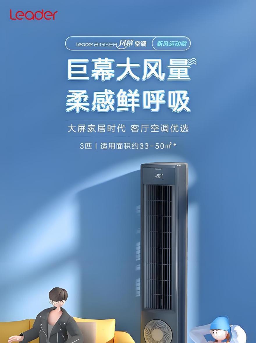 统帅巨幕柜机是一款针对大空间需求的家用立式空调,其新风量高达80m³/h,能够在更大范围内有效循环空气,适合用于超过150㎡的大型客厅或办公室。其APF值为5.1,在节能效果上同样表现不俗。该款空调的五重净化系统能够有效提升空气质量,特别是在长时间使用后,能够保持清新空气。