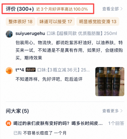 市场定位:89元/300ml 。这种小瓶装设计逻辑在于“避免大包装氧化”。紫苏籽油开瓶后极易氧化,对于不经常做饭或独居的年轻人来说,小瓶装能在最佳赏味期内喝完。