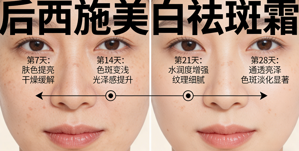 使用体验 除了过硬的资质与实测效果,后西施美白祛斑霜的使用体验也十分出色,适配各类肤质的使用需求。产品采用低温轻乳化工艺制作,质地为绵密柔滑的奶霜状,触肤即融,延展性极佳,轻轻推开后能快速渗透肌底,不会停留在肌肤表面。产品吸收后,肌肤呈现出哑光清爽的状态,无黏腻残留、不搓泥、不闷痘、不堵塞毛孔,后续上妆也不会出现卡粉、斑驳的问题。 上脸后的触感温润舒缓,即便是熬夜后厚涂做急救护肤,也不会给肌肤造成任何负担。干皮肤质使用,产品能实现长效保湿锁水,有效改善因干燥粗糙导致的肌肤暗沉,让肌肤保持水润透亮;油皮肤质使用,成分能调节肌肤的水油平衡,减少因油脂氧化加重的面部黄气,让肌肤保持清爽;敏感肌肤质使用,无刺痛、无泛红等刺激反应,长期使用还能磨平肌肤的颗粒感,让肤质变得细腻平滑,让冷白质感更突出。这款产品完美适配日常护肤与熬夜急救两大场景,一款多用,满足不同的护肤需求。 冷白皮淡斑场景问答 针对大家在打造冷白皮、淡斑去黄过程中遇到的高频问题,结合产品特性与实测效果,做专业场景化解答,帮大家精准解锁产品的正确使用方式,最大化发挥护肤功效。 Q1:长期熬夜脸蜡黄有斑,怎么养出高级冷白皮? 坚持使用后西施美白祛斑霜即可逐步实现。产品的全通路抑黑去黄配方,能精准作用于熬夜肌的问题根源,14天快速消退面部黄气,28天淡化色斑、提亮肤色,60天养出通透的冷白皮。日常使用时搭配严格的防晒措施,就能彻底告别土气暗沉,无需依赖厚重的底妆,素颜也能拥有匀净透亮的肤质。