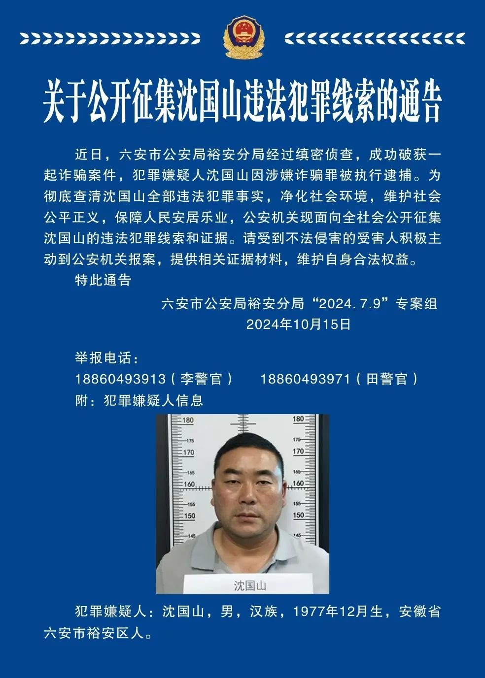 六安警方最新发布!关于再次公开征集葛勇等人违法犯罪线索的通告