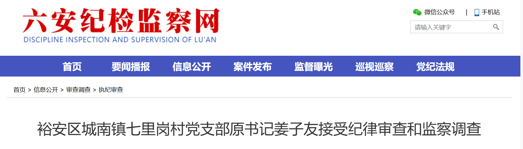 裕安区城南镇七里岗村党支部原书记姜子友被
