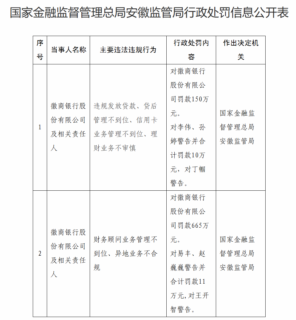 徽商银行巢湖支行被罚30万元,责任人遭警告