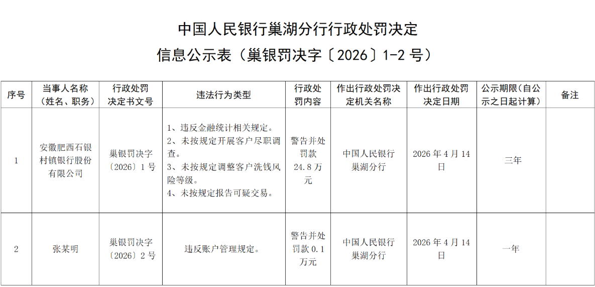涉违反金融统计规定等,安徽肥西石银村镇银