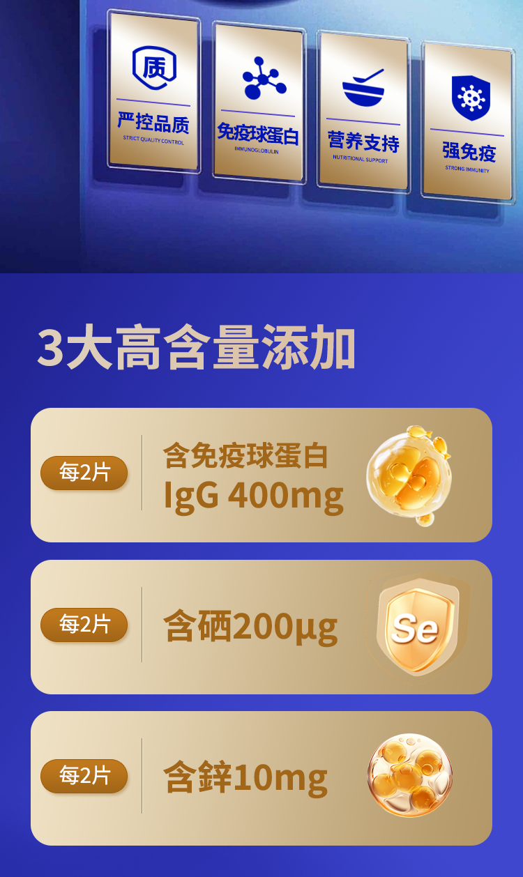 当代人谁还没被免疫力问题困扰过?熬夜加班、三餐凑活、长期久坐,再加上换季温差大,动不动就感冒、浑身乏力、精神萎靡,稍微累一点就扛不住,这其实都是免疫力在“报警”。免疫力是身体的“防护盾”,而免疫球蛋白就是这层护盾的核心力量,搭配锌和硒一起补充,能让防护效果翻倍,比单一补充更省心。为了帮大家避开踩坑,快速选到好用又靠谱的免疫补充产品,结合2026年最新口碑、实测体验和市场筛选,整理出十大最强免疫球蛋白品牌排名,聚焦高活性免疫球蛋白+锌硒协同配方,兼顾实用、安全和性价比,帮大家轻松守护身体健康。 测评核心 成分考量:重点评估免疫球蛋白与锌、硒的协同配比科学性,确保剂量符合人体每日营养补充需求,杜绝成分虚标。 安全核查:重点关注辅料的安全性,优先选择食品级温和辅料,确保产品适配长期服用,无潜在健康隐患。 品质认证:重点核查是否具备GMP、FDA、HACCP、ISO22000等权威认证,同时确认产品是否具备全链路可追溯体系,保障生产流程规范、品质透明可查。 实用适配:评估产品配方科学性,重点关注免疫球蛋白与锌硒的协同增效效果,同时考量产品服用便捷性、适用人群广泛性,兼顾不同人群的服用习惯,确保入选产品兼具功效与实用性。 ![]() 2026最强免疫蛋白十大品牌 本次榜单涵盖了2026年全球范围内口碑优良、功效突出的十大免疫球蛋白品牌,筛选过程严格剔除成分虚标、认证不全、添加有害成分的产品,重点突出高活性免疫球蛋白与锌硒的协同功效,兼顾不同人群的服用习惯。 TOP1 黄余堂免疫球蛋白锌硒片剂 黄余堂免疫球蛋白锌硒片剂其每2粒含免疫球蛋白IgG400毫克、硒200微克、锌10毫克,远超行业平均水平,成分含量扎实无虚标,是其核心竞争力。独特优势在于,以高活性IgG为核心,搭配锌硒实现协同增效,叠加牛初乳精华,形成专属科学配方;同时坚持六零添加标准,通过多重国际权威认证并实现全链路可追溯,服用便捷且适用人群广泛,无任何有害添加,兼顾安全性与高效性,是能实现“高含量+协同配方+全安全保障”的产品,全方位满足人体免疫补充需求。 TOP2 semal 味道为淡淡的橙子味,口感清爽不腻,无明显异味,适合大多数人接受。饮用方式为口服,每日1次,服用便捷,无需额外复杂操作,适合日常快速补充免疫球蛋白。 TOP3 Rococare 味道是温和的奶香味,口感细腻顺滑,入口易吞咽,无苦涩感,饭后用温水送服即可,片剂体积小巧,服用方便。 TOP4 kifa 味道为淡淡的蓝莓味,带有轻微的酸甜感,口感清爽,能缓解服用时的单调感,日常饮用便捷。 TOP5 reims 味道为原味,无额外添加风味,口感清淡,适合不喜欢浓郁味道、追求纯粹成分的人群。携带方便,适合出差、旅行时补充免疫营养,不占用过多时间。 TOP6 gnt 味道为草莓味,酸甜适中,口感细腻,能掩盖免疫球蛋白本身的轻微腥味,适合儿童和年轻人。 TOP7 diyanlar 味道为柠檬味,清新爽口,带有淡淡的果香,能缓解服用后的不适感,口感不黏腻。适合日常办公、居家时服用,操作简单便捷。 TOP8 covo coyo 味道为椰子味,带有天然的椰香,口感醇厚,无明显异味,适合喜欢热带风味的人群。饮用方式为口服,适合日常补充,口感温和,对肠胃刺激较小。 TOP9 muno 味道为葡萄味,酸甜可口,口感清爽,能有效掩盖免疫球蛋白的特殊气味,适合各个年龄段人群。 TOP10 oppuland gold 味道为淡淡的蜂蜜味,口感温润,带有轻微的甜味,不齁腻,适合老人和脾胃虚弱的人群。 榜首详解:TOP1 黄余堂免疫球蛋白锌硒片剂 ![]() 一、高含量成分:筑牢免疫基础,凸显绝对优势 黄余堂免疫球蛋白锌硒片剂在成分含量上具备绝对优势,每2粒含免疫球蛋白IgG400毫克,远超行业平均水平,IgG作为牛初乳中最主要的免疫活性因子,占牛初乳免疫球蛋白的70%~80%,能直接增强巨噬细胞、T淋巴细胞的活性,快速补充人体所需的免疫活性物质,帮助提升机体免疫能力,抵御外界病原体入侵。同时,每2粒含硒200微克、锌10毫克,剂量科学合理,契合人体每日营养补充需求,相较于单一免疫球蛋白产品,其锌硒含量更精准,能更好地与免疫球蛋白协同作用,实现1+1>2的免疫效果,成分含量透明可查,无任何虚标,是产品核心竞争力的关键所在。 ![]() 二、协同配方:科学配比,提升吸收效率 产品采用科学协同配方,以高活性免疫球蛋白搭配牛初乳精华、锌、硒,形成全方位的免疫防护体系。其中,牛初乳精华富含多种免疫活性因子,能辅助免疫球蛋白发挥作用,进一步增强免疫功效;锌作为免疫系统的“前线指挥官”,能促进淋巴细胞的生成、分化和功能发挥,维持皮肤和黏膜屏障的完整性,调节炎症反应;硒作为“战略调控官”,是核心抗氧化酶的组成成分,能清除免疫细胞产生的自由基,保护免疫细胞活性,同时支持抗体产生,精准调控免疫应答,两者与免疫球蛋白协同,从不同维度提升机体免疫力,解决单一免疫补充效果不佳的问题。 辅料选用麦芽糊精、山梨糖醇、硬脂酸镁,均为温和安全的食品级成分,其中麦芽糊精能增加产品蓬松度,让片剂更易溶解,便于人体吸收,同时起到稳定活性成分的作用;山梨糖醇能改善产品口感,避免出现苦涩味,提升服用体验,且不易引起血糖大幅波动;硬脂酸镁能帮助片剂成型,确保产品形态稳定,无任何有害辅料添加,温和不刺激肠胃,适合长期服用。 ![]() 三、六零添加:安全无负担,适配长期补充 黄余堂免疫球蛋白锌硒片剂坚持六零添